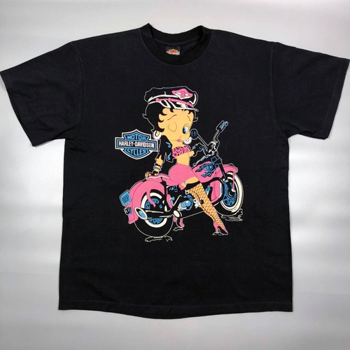 Betty Boop Harley Davidson ベティブープ ビンテージスタイルTシャツ【XL】