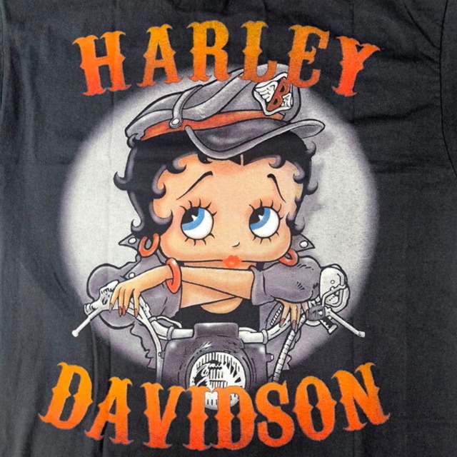 Betty Boop Harley Davidson ベティブープ ビンテージスタイルTシャツ【XL】